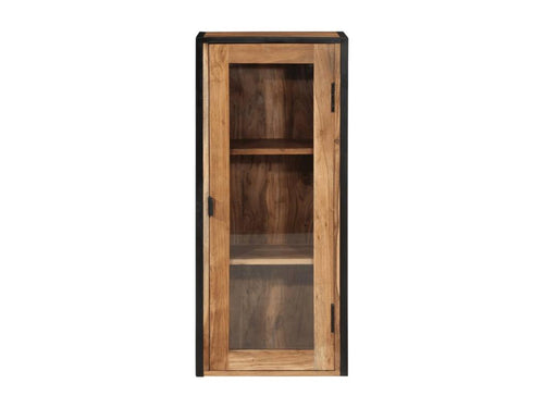 High sideboard with multiple storage options, 3 doors, drawer, 5 niches, two-tone light wood and black finish -